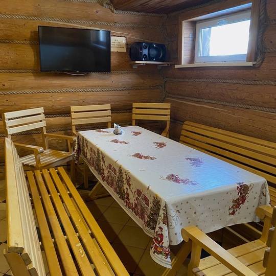 К Вашим услугам две душевые кабины, простыни, а так же телевизор, большой обеденный стол с деревянными скамейками и набор необходимой посуды.